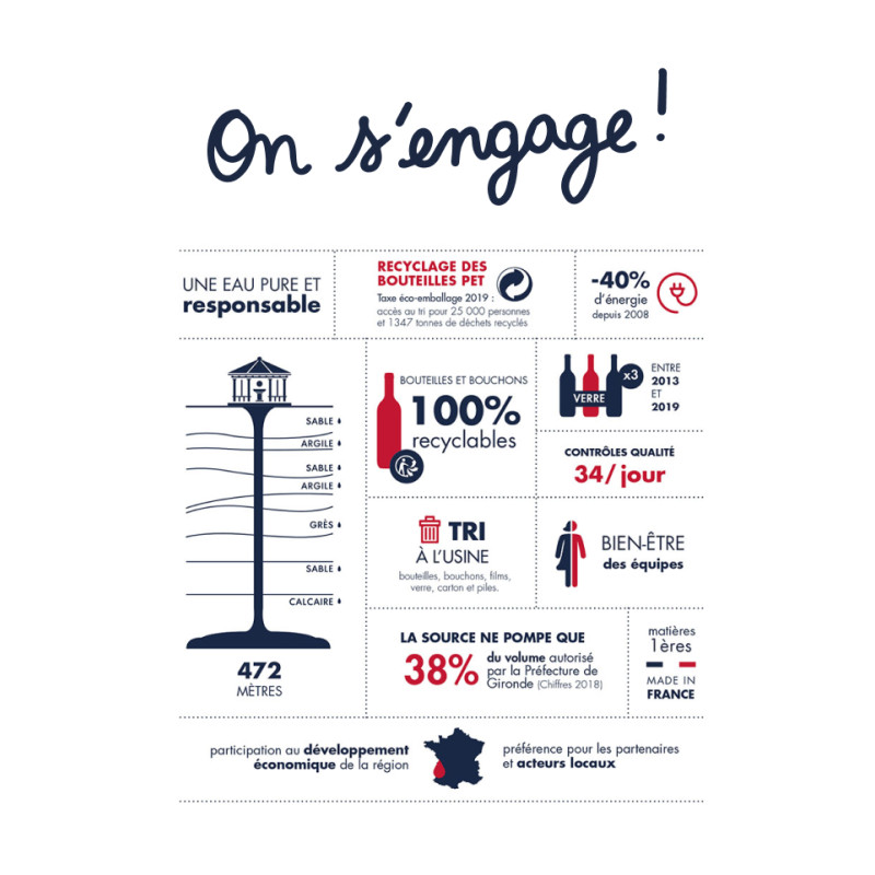 Captée à 472m de profondeur à Arcachon et protégée de toute pollution, EQUILIBRE MINERAL PURETE ABSOLUE ZERO NITRATE c’est une Eau Minérale d’une Grande Pureté, SANS NITRATE et de composition minérale équilibrée qui lui donne une digestibilité parfaite.